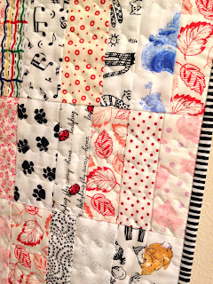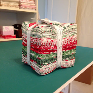 I chose to use Kate Spain's Christmas line, Merry Merry which is filled with birds, Christmas trees, roses, pine branches, and an adorable village fabric with a cute cat. What's not to like, right?!